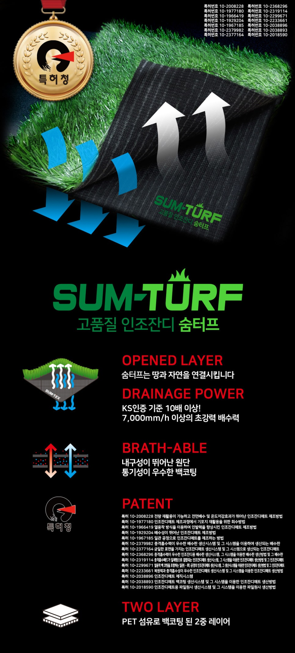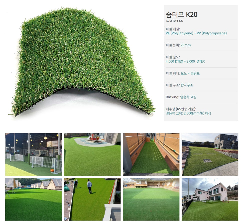 에 숨터프 인조잔디를 시공하였습니다. 숨터프는 특허받은 기능성 구조를 가진 제품으로, 잡초 방지, 자외선 저감, 수분 배수 기