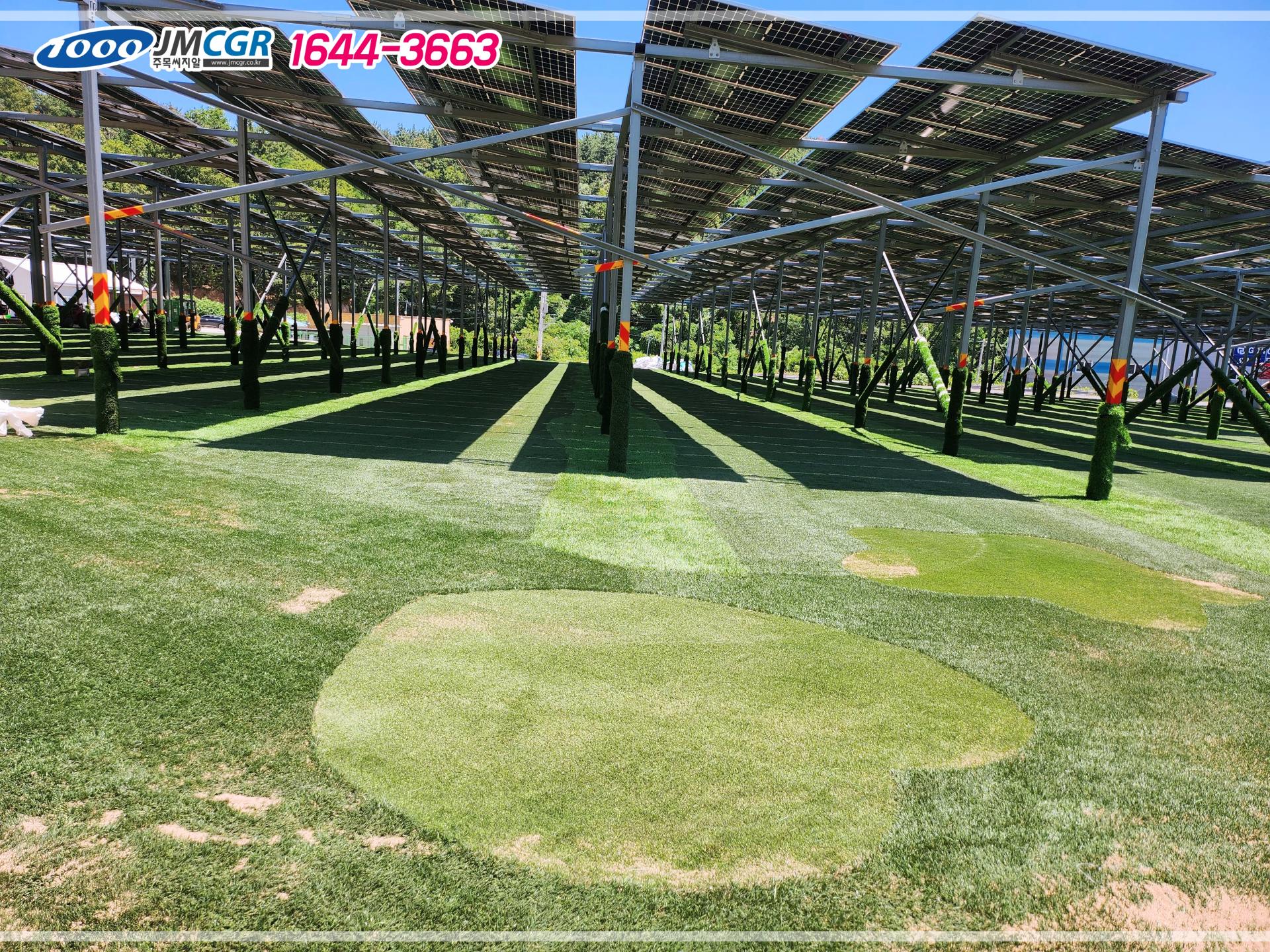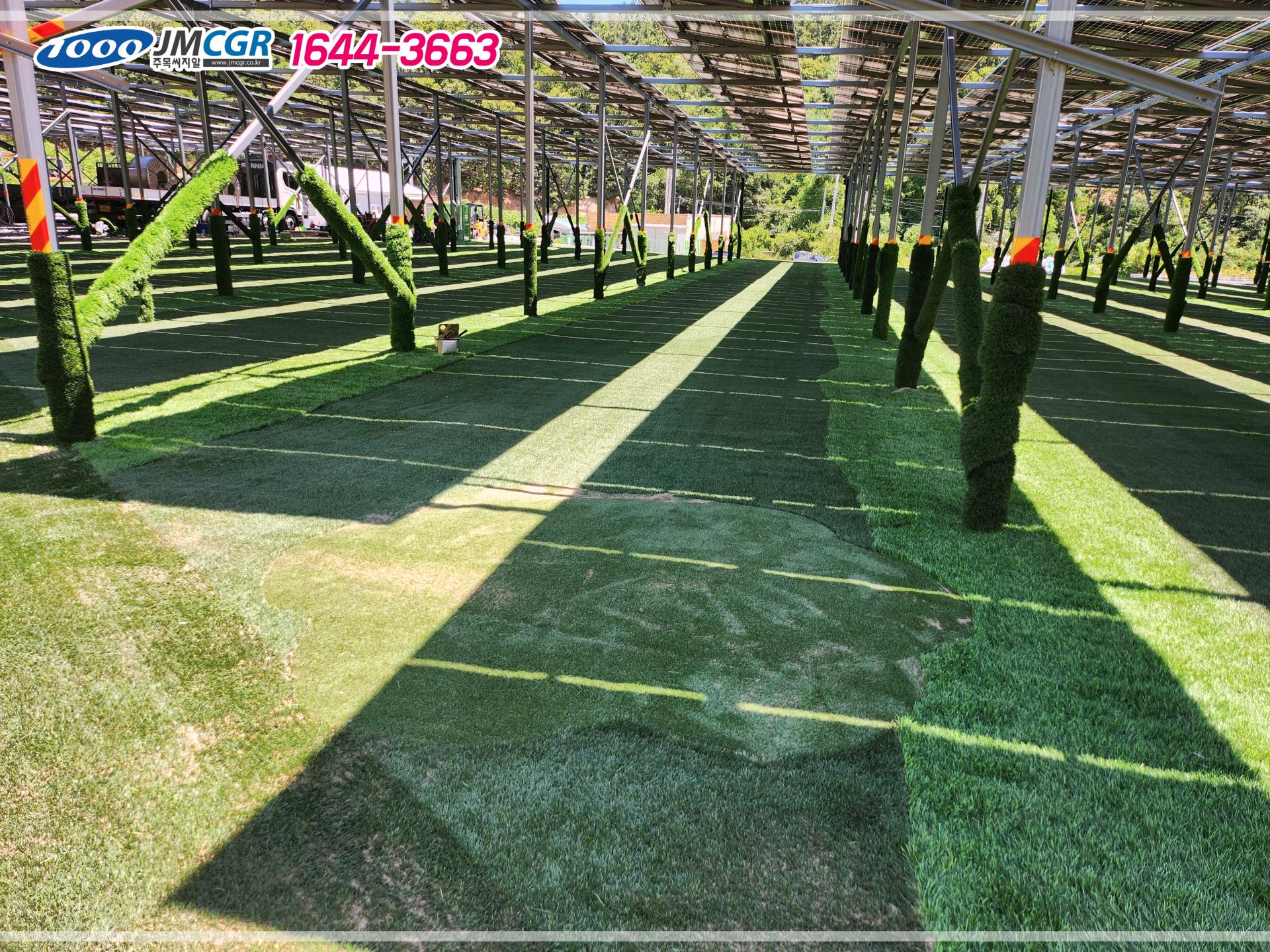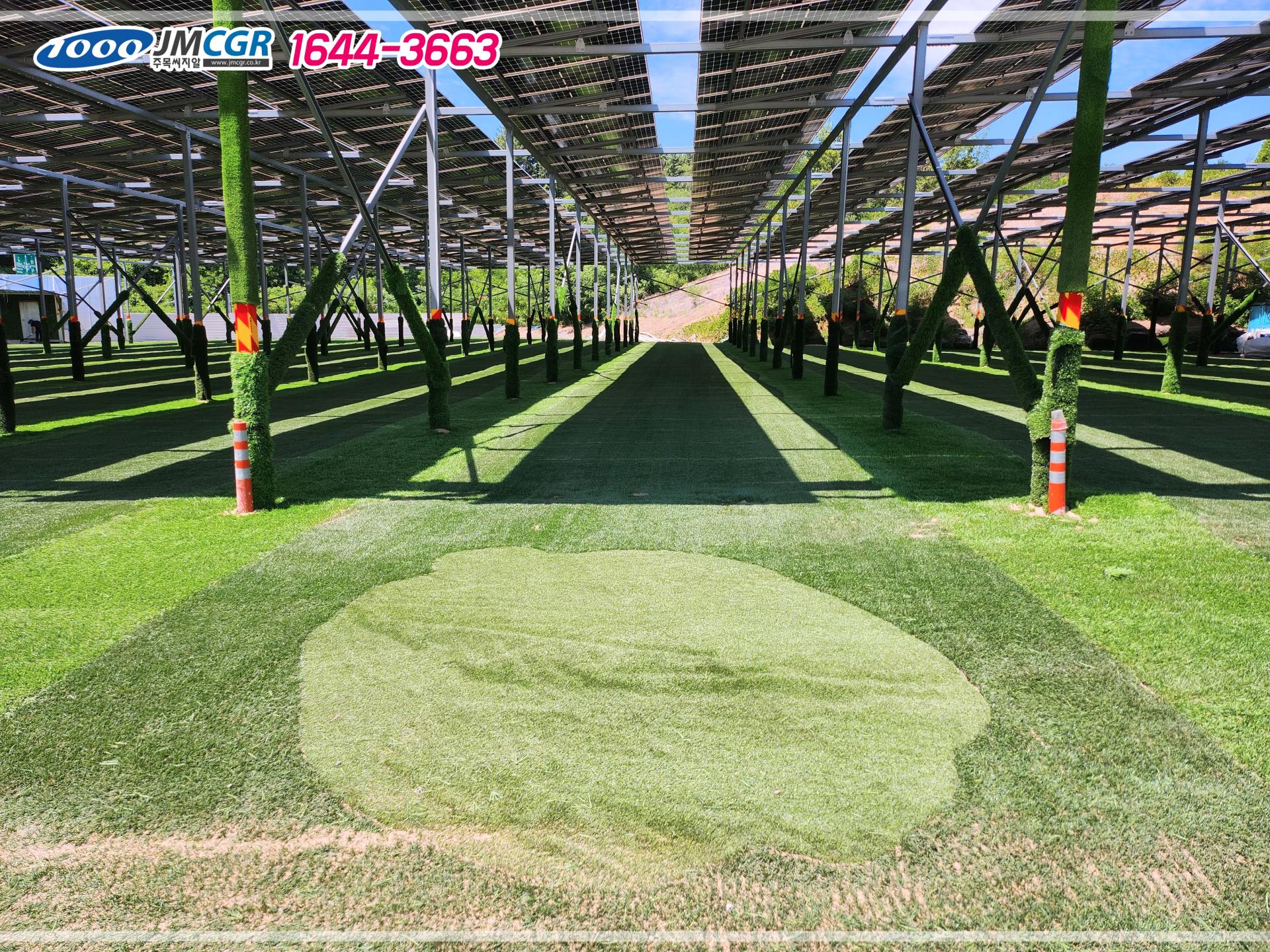 태양광 패널 시공 후 고민되는 하부 공간 문제, 이제는 숨터프 인조잔디로 해결하세요.