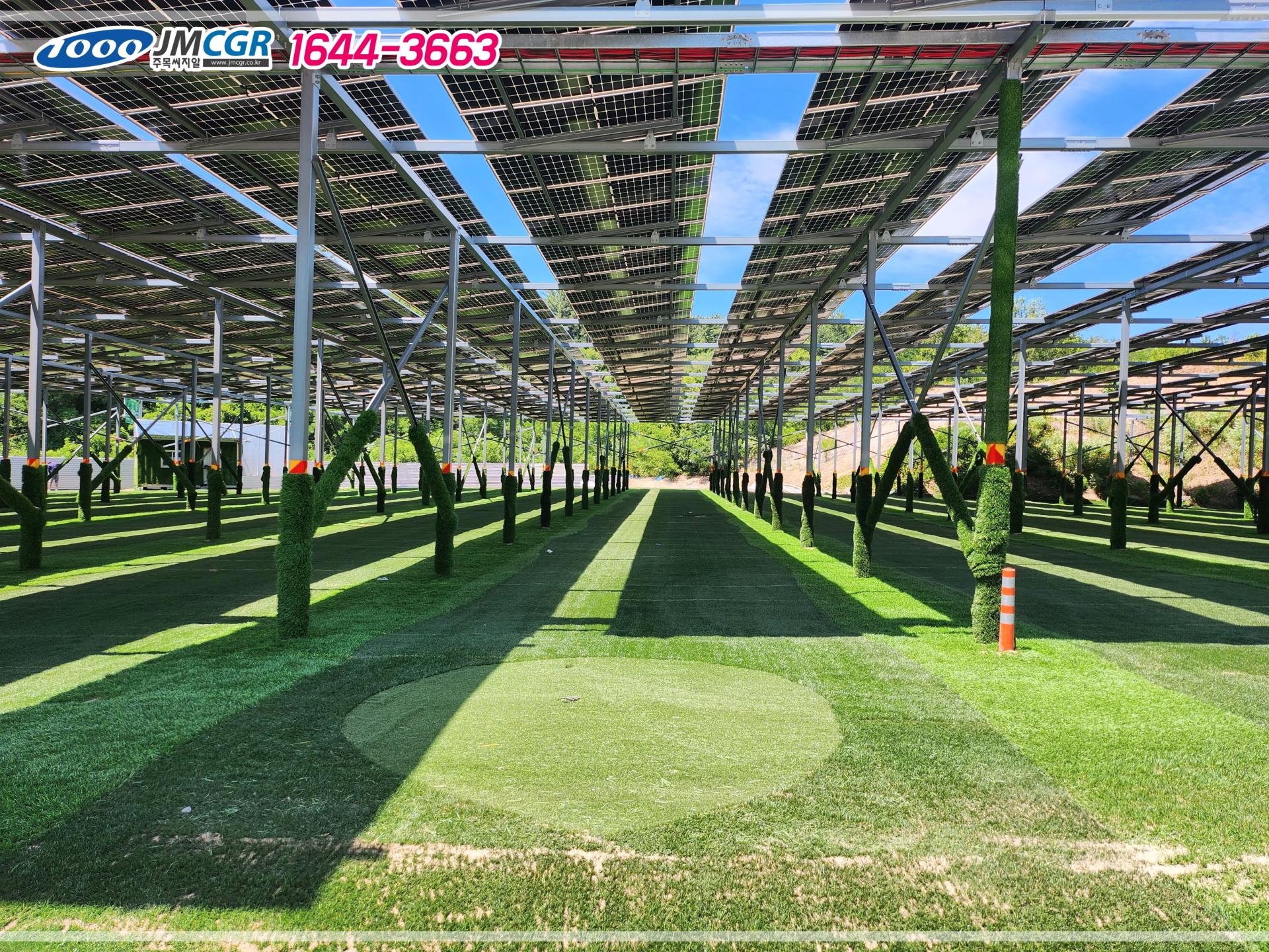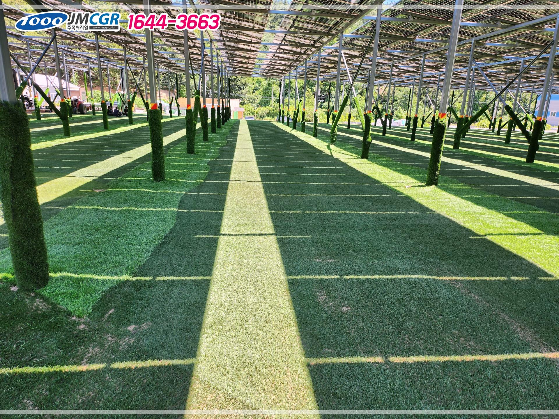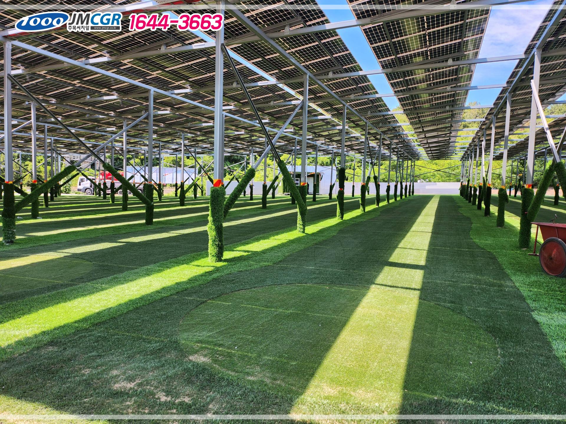 태양광 패널 시공 후 고민되는 하부 공간 문제, 이제는 숨터프 인조잔디로 해결하세요.