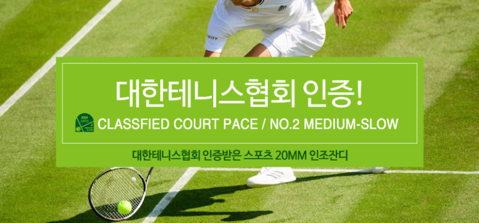 이 제품은 대한테니스협회 인증을 받은 스포츠 전용 인조잔디로, 경기 코트 수준의 내구성과 마찰력을 갖추고 있으면서도, 비