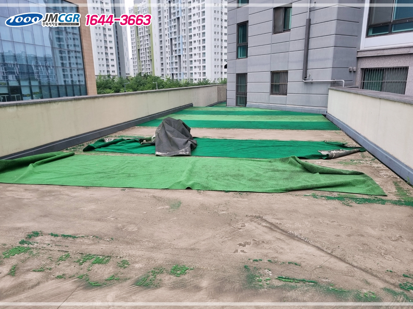 이번에는 사용 연한이 끝난 아파트 옥상과 테라스 공간을 새롭게 꾸민 국산인조잔디 쉼터프 시공 현장을 전해드립니다. 이번