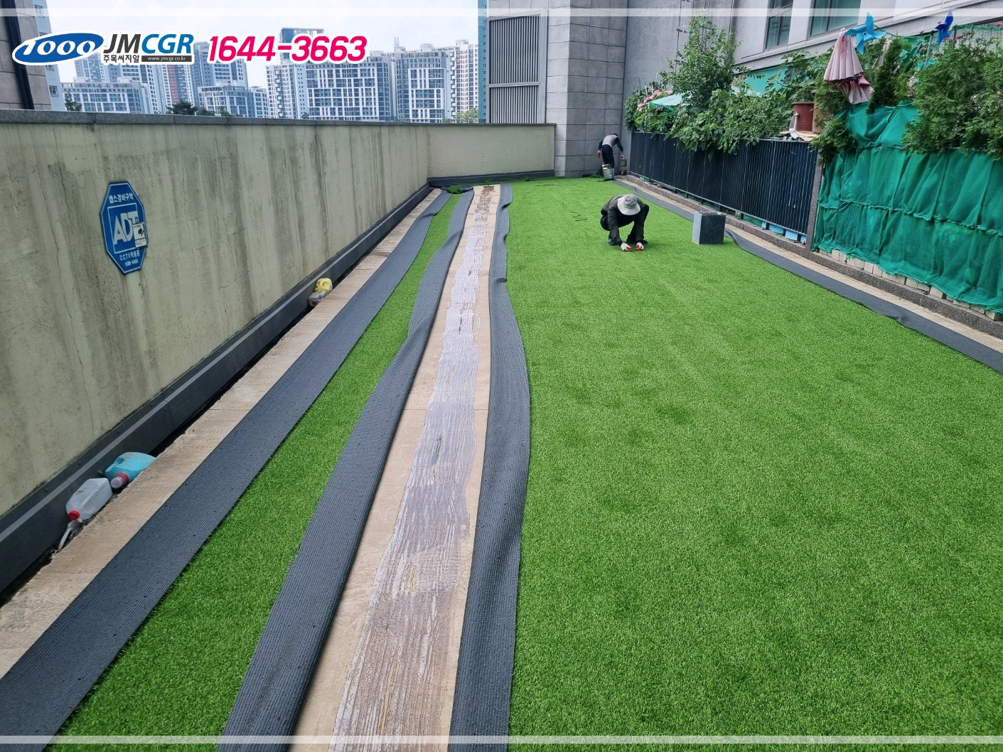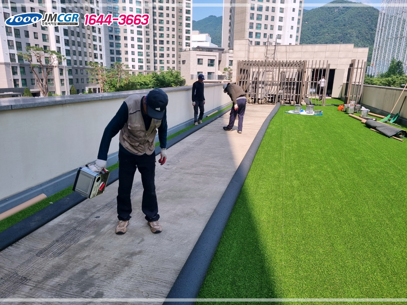 옥상·테라스를 새롭게! 국산인조잔디 쉼터프 시공 리포트