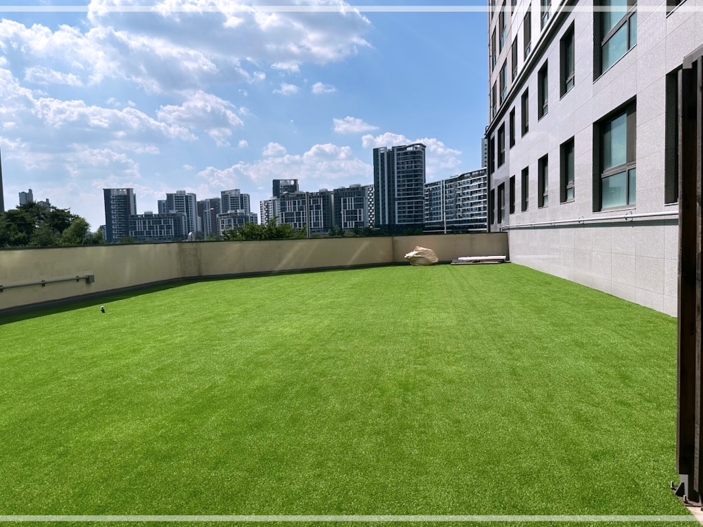 완공 후에는 이전의 바랜 회색빛 대신, 깊고 선명한 초록빛이 옥상과 테라스를 채웠습니다. 햇볕을 받아 반짝이는 잔디 덕분에