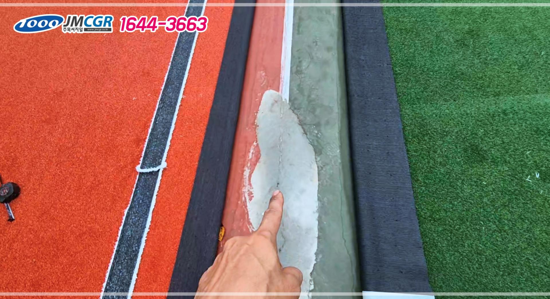 시공 과정에서도 저희는 세심함을 놓치지 않습니다. 단순히 잔디를 붙이는 것이 아니라 라인 부분에 본드 시공을 더해, 비나 습